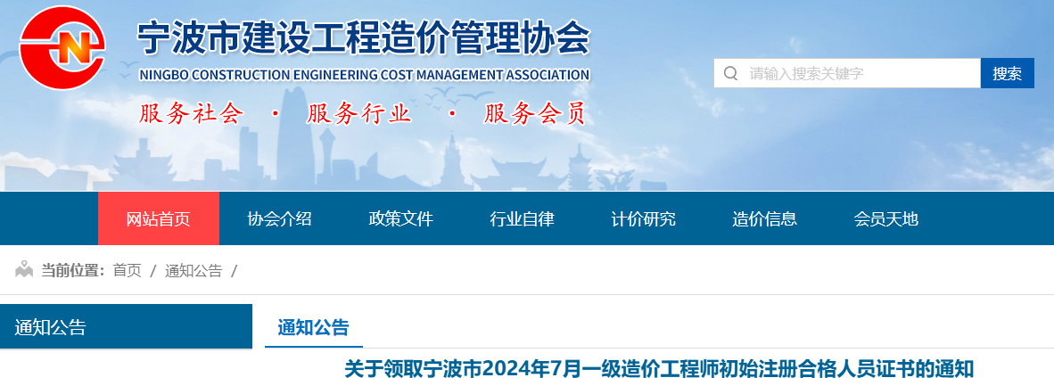宁波市2024年7月一级造价师注册证书领取通知原文如下:
