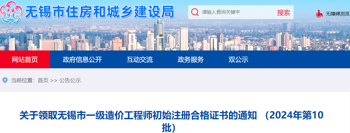 2024年7月8日,无锡市住房和城乡建设局发布了《关于领取无锡市一级造价工程师初始注册合格证书的通知(2024年第10批)》,其中明确无锡一级造价师初始注册证书已到,相关人员可进行现场领证。