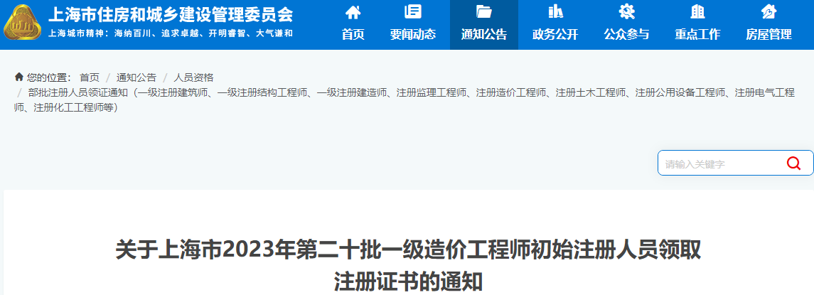 近日,上海市住房和城乡建设委员会发布了《关于上海市2023年第二十批一级造价工程师初始注册人员领取注册证书的通知》,其中明确2023年一级造价师初始注册证书已开始办理,申请人员可进行现场领证或邮寄领证。