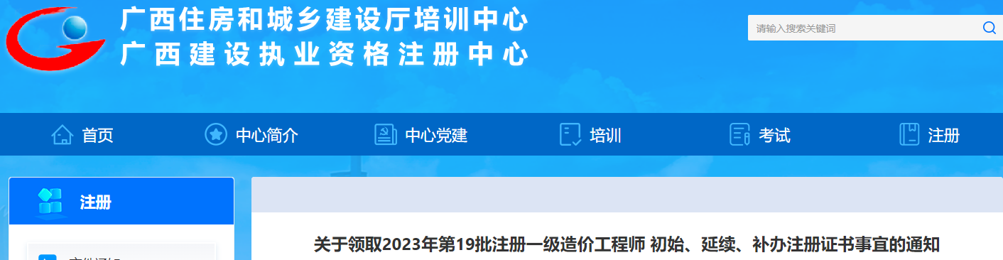 2023年广西第19批注册一级造价工程师初始、延续、补办注册证书领取通知原文如下: