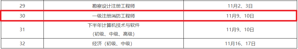 北京一级消防工程师考试时间