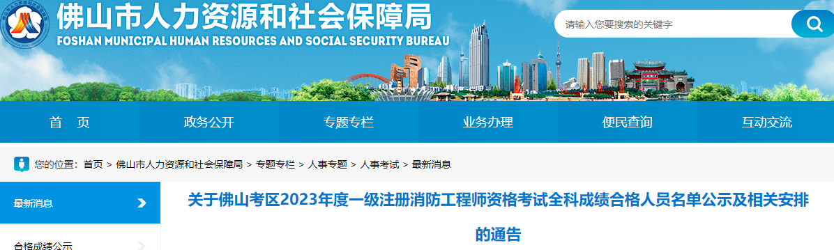 近日,佛山市人力资源和社会保障局发布了《关于佛山考区2023年度一级注册消防工程师资格考试全科成绩合格人员名单公示及相关安排的通告》,其中明确该市共有90人取得一级消防工程师合格成绩,并对相关人员信息予以公示。