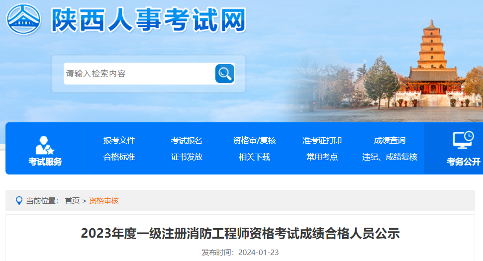 2023年度一级注册消防工程师资格考试成绩已经公布,现将陕西省该项资格考试成绩合格人员予以公示。
