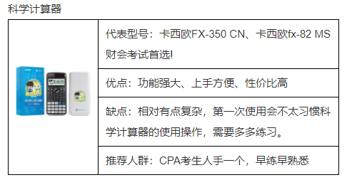 适合CPA考生使用的一般是科学计算器,首先来讲计算器是不允许有外壳的。最重要的是不能带有储存功能,像CTLG+M+代表存储功能,是不可以带进考场的,单独带M+是可以带进考场的。