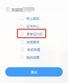 2.点击左边栏的“打印准考证”选项,如图2所示。