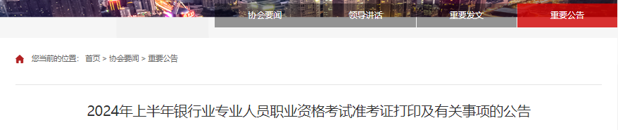2024年上半年银行业专业人员职业资格考试准考证打印及有关事项的公告