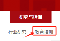 第一步:报考银行业的考生,点击进入【中国银行业协会】,点击顶部导航栏【研究与培训】,在点击【教育培训】。