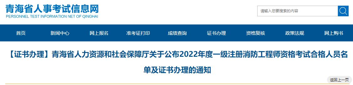青海省2022年度一级消防工程师合格人员名单及证书办理通知原文如下: