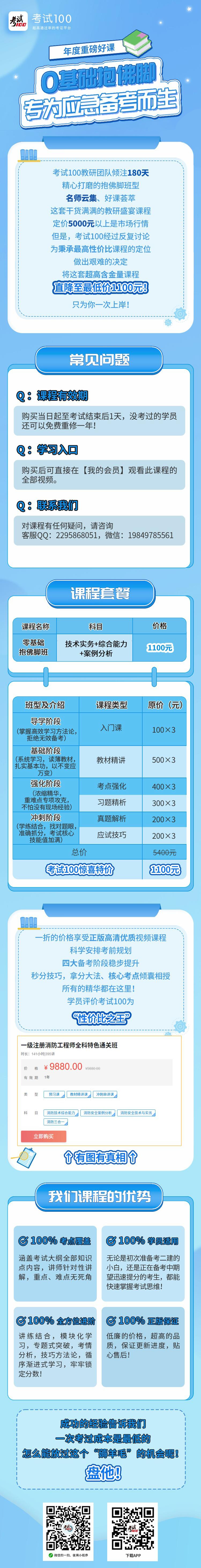 1.录播课: 备考指导+精讲班+考点强化班+习题精析班+规范+真题解析班 2.感谢购买,考试100作为公益企业10年来已援建10+2所希望小学。 3.课程使用时间为一年。