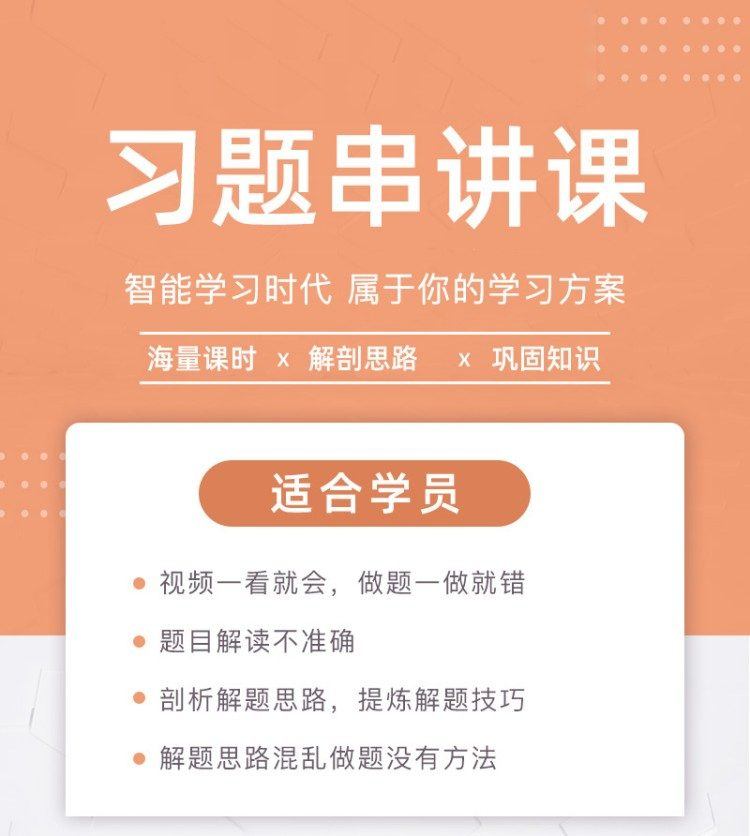 1、本课程通过专题形式精讲典型考题深入剖析,帮助学员熟悉考试题型难度、掌握命题规律、减少答题失误、提高得分率! 2、该课程使用时间为一年,购买后在【我的会员】里查看。有效期内可免费观看此课程的全部视频! 3、对课程有任何疑问,请咨询QQ:2295868051,微信:19849785561 4、感谢购买,考试100作为公益企业10年来已援建10+2所希望小学。