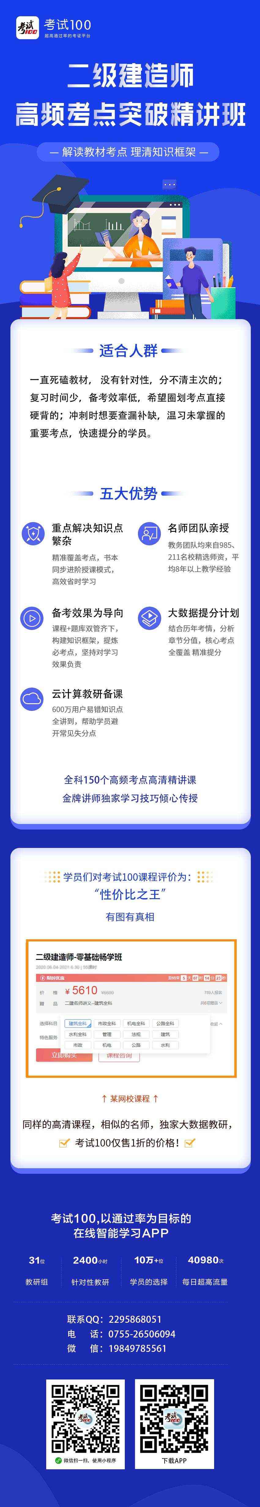 1.该课程为最新二建课程,该课程按照最新考纲,系统梳理教材知识点,针对性分析与讲解,构建学习体系,掌握核心考点,打牢备考基础,通关靠谱! 2、感谢购买,考试100作为公益企业10年来已援建10+2所希望小学。 3、有效期:自购买日开始算360天