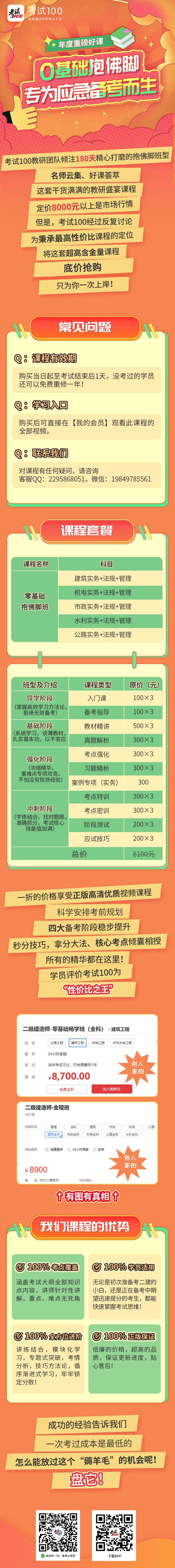 1.本课程为《法规》+《管理》+《专业实务》3科的组合套餐班级(3科的【教材精讲】+【考点强化】+【考点特训班】+【案例分析(仅仅实务)】的组合),特色全名师授课;分阶段学习;逐步浓缩考点,直击考试要点! 2.按照教材大纲讲解考点重点;识别知识误区,避免考试落入陷阱;详细分析讲解各类考点题型;掌握命题规律;分析出题方向,总结技巧胸有成竹应考! 3.对课程有任何疑问,请咨询QQ:2295868051,电话:0755—26506094 4.该课程使用时间为当年的考试当天,购买后可直接在【我的会员】观看!不过可以免费重修一次。 5.感谢购买,考试100作为公益企业10年来已援建10+2所希望小学。