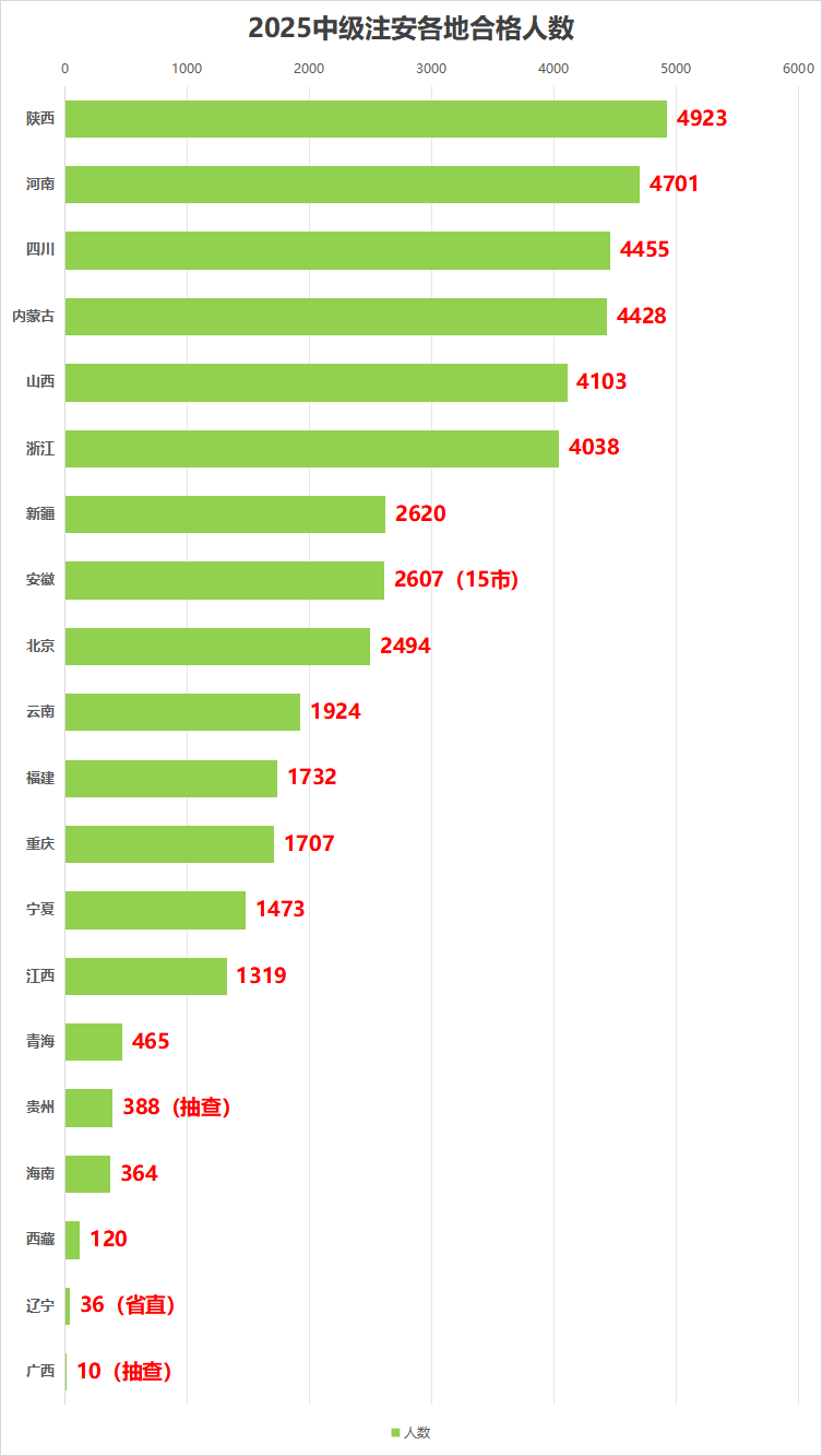 全国已公布2025年度中级注册安全工程师合格人员名单的省份共有20省,分别是:陕西、河南、四川、内蒙古、山西、浙江、新疆、北京、云南、福建、重庆、宁夏、江西、青海、海南、西藏、贵州、广西、辽宁、安徽