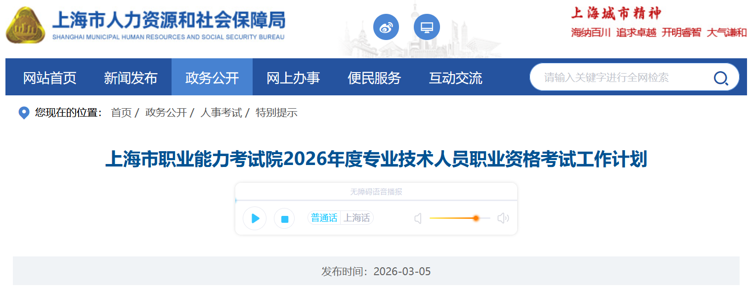 | 4 | 会计专业技术资格(初级) | 上海财政网已发布 | 1月12日—— 1月27日 |