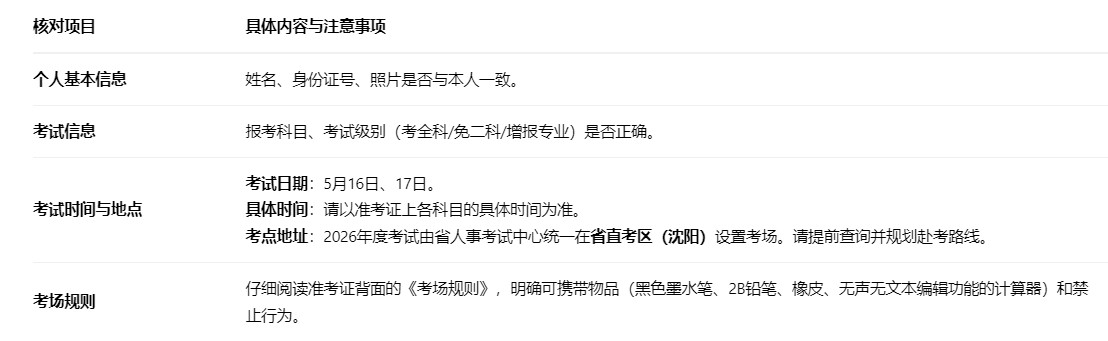 打印出准考证后,请立即核对以下关键信息,并做好考前准备: