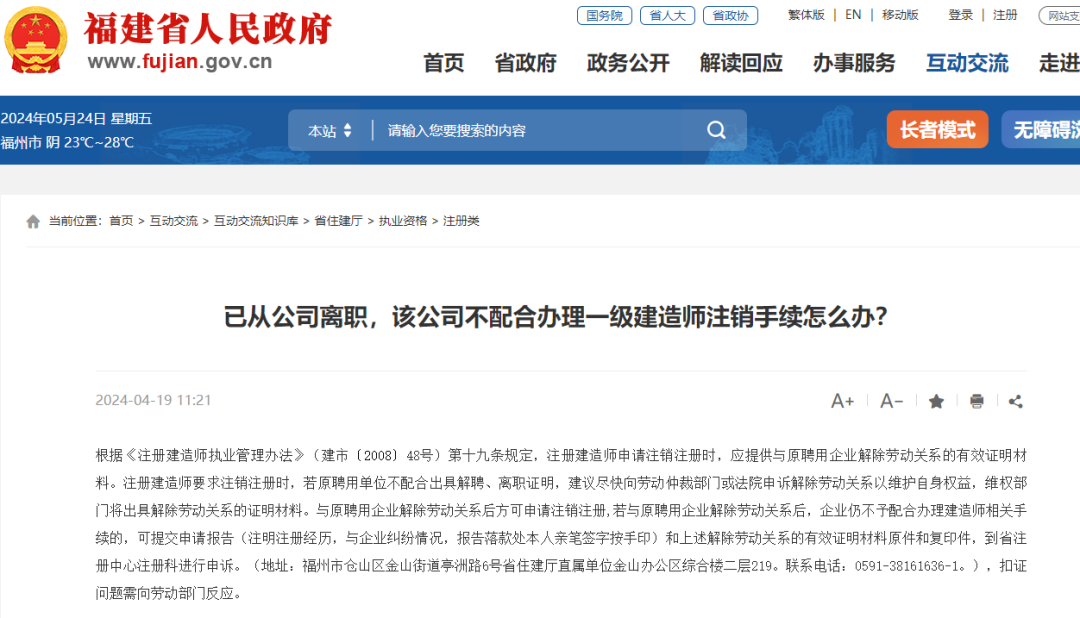 一建证书被扣、原注册企业不配合办理注销业务,持证人如何自救?江苏住建厅、福建住建厅支了俩招。