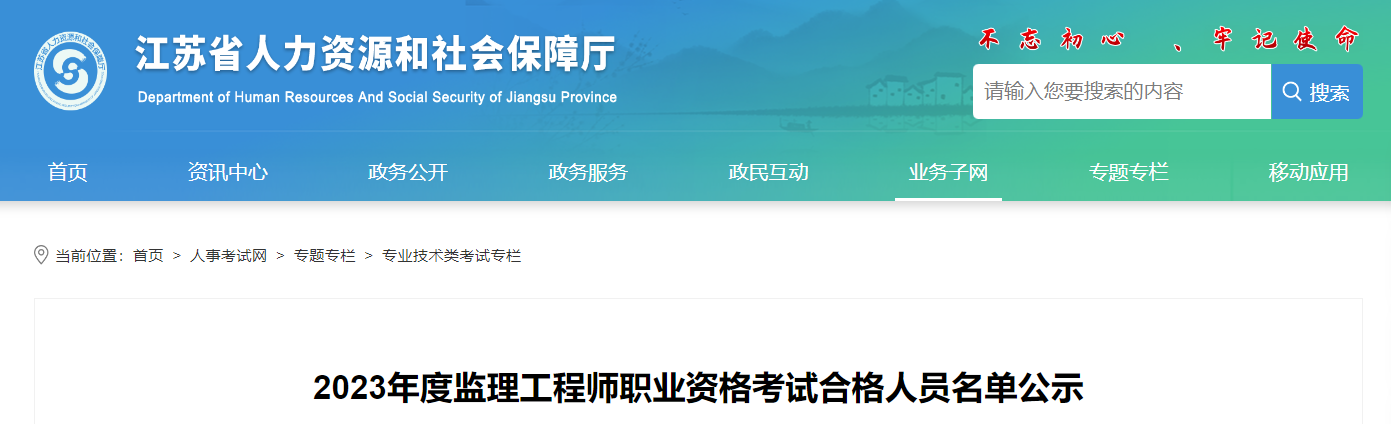 8月4日,江苏省人力资源和社会保障厅发布了“2023年度监理工程师职业资格考试合格人员名单公示”,公示期至2023年8月13日截止。