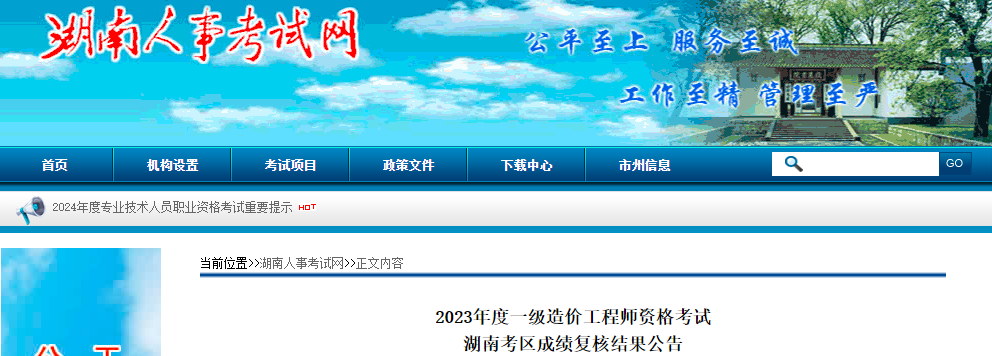 2024年3月4日,湖南人事考试网发布了《2023年度一级造价工程师资格考试湖南考区成绩复核结果公告》,其中明确湖南省共有19人申请一级造价师成绩复核,复核结果为“与公布成绩一致”。