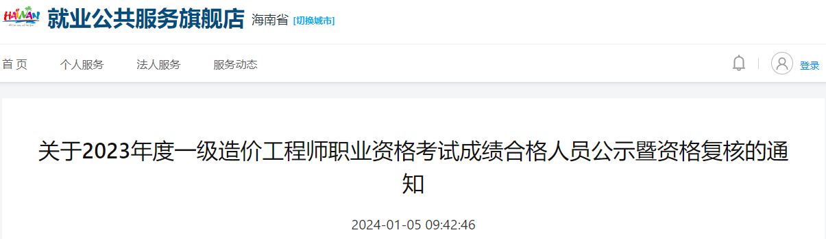 2023年1月5日,海南省公共招聘网发布了《关于2023年度一级造价工程师职业资格考试成绩合格人员公示暨资格复核的通知》,其中明确该省共有502人取得一级造价师合格成绩,部分考生需进行考后资格审核。