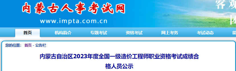 2024年1月2日,内蒙古人事考试网发布了《内蒙古自治区2023年度全国一级造价工程师职业资格考试成绩合格人员公示》,其中明确该地共有1045人取得一级造价师合格成绩,并对相关人员信息予以公示。