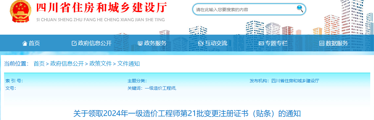 四川省2024年一级造价师第21批变更注册证书(贴条)领取通知原文如下: