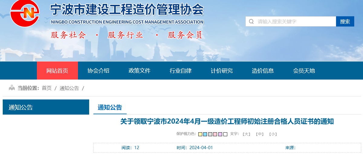2024年4月1日,宁波市建设工程造价管理协会发布了《关于领取宁波市2024年4月一级造价工程师初始注册合格人员证书的通知》,其中明确宁波一级造价师初始注册证书需在4月1日至19日领取,相关人员可现场领证。