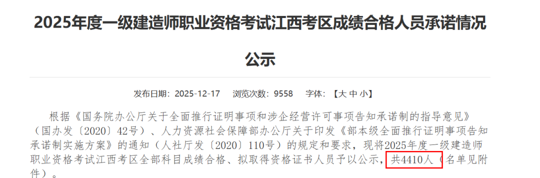 今年,广东、广西、甘肃、江苏不再公布25年一建考试成绩合格人员名单。继云南、青海、内蒙古、四川、福建、浙江、贵州、宁夏、海南、西藏后,江西、河南、北京、重庆公布25年一建考试成绩合格人员名单。
