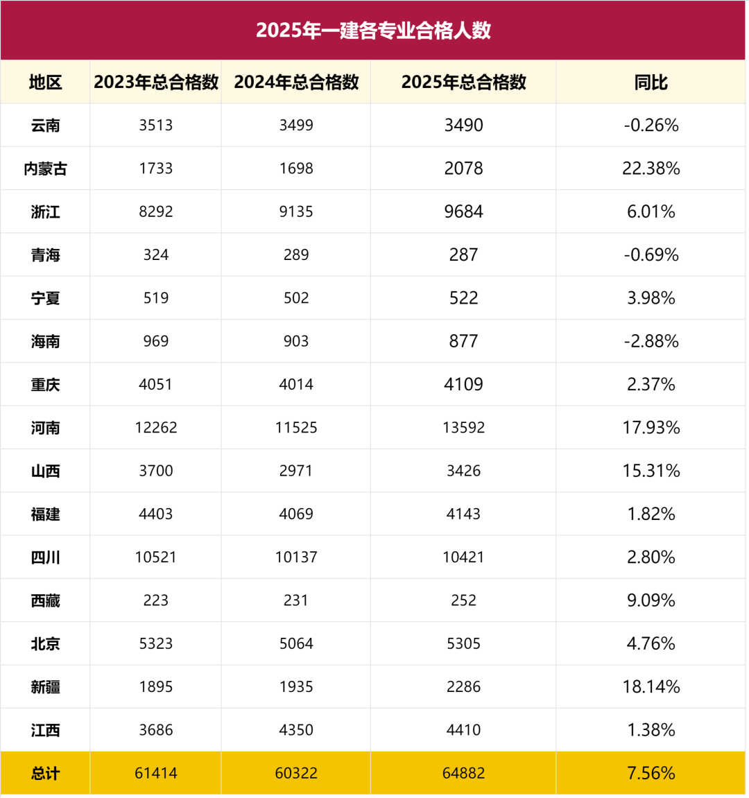 截至目前,全国16个省份和地区相继公示2025年一级建造师合格人员名单,累计公示人数已达64882人。