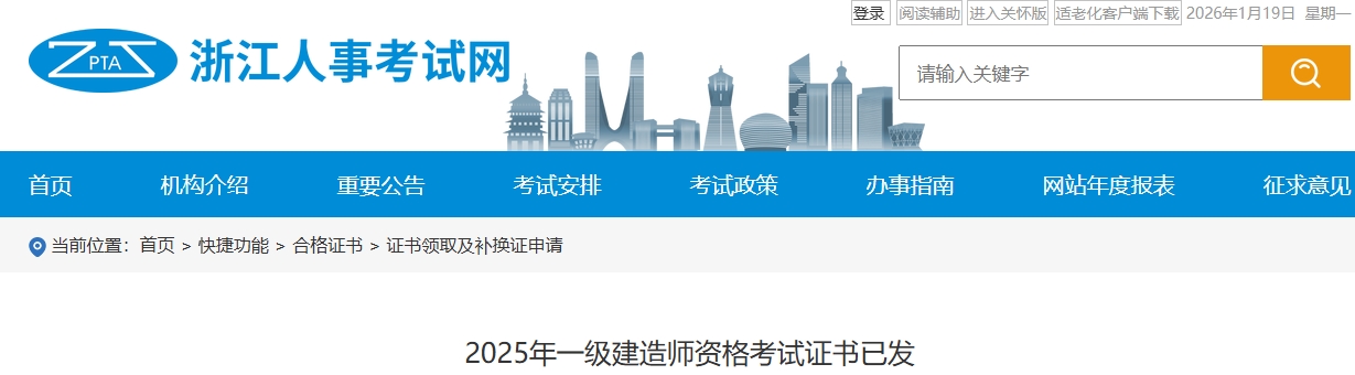 1月16日,浙江人事考试网发布《2025年一级建造师资格考试证书已发》,明确浙江2025年度一级建造师证书未申请邮寄的已全部发放至当地。