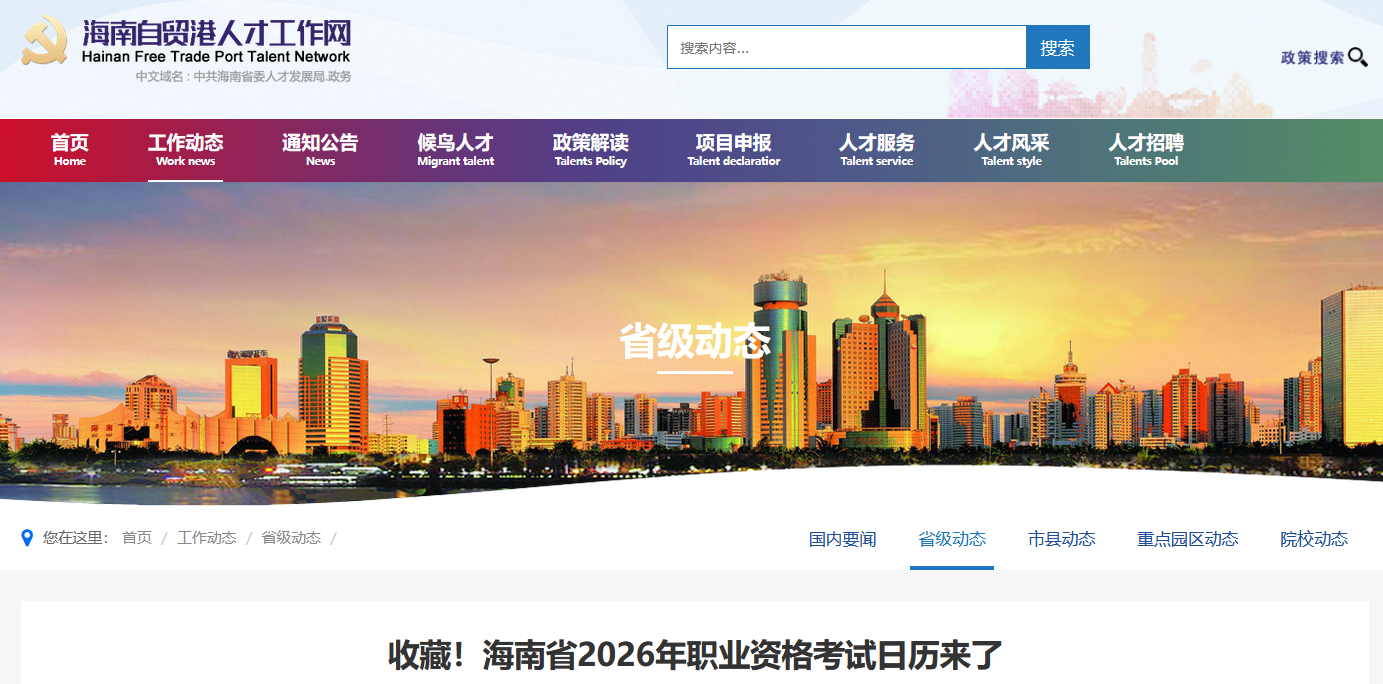 2月12日,海南省人力资源开发局发布《海南省2026年职业资格考试工作安排表》,涵盖28个大类。