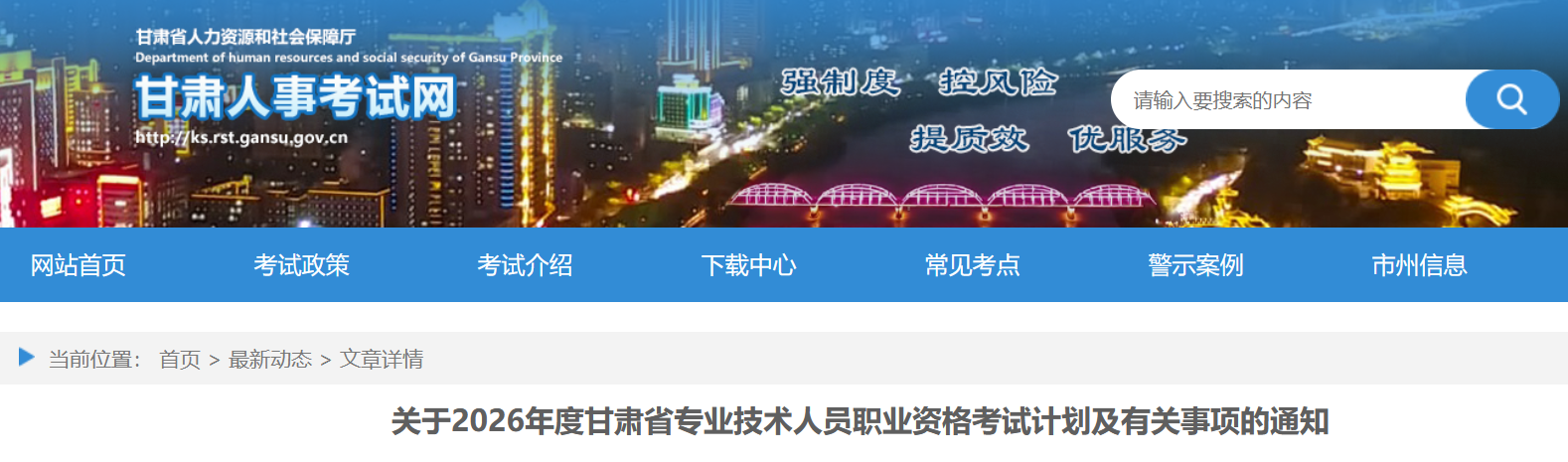 一、请各市州考试机构按照《2026年度甘肃省专业技术人员职业资格考试工作计划》(见附件)和省人力资源考试中心的统一安排,有序做好各项考试组织实施工作,确保2026年度各项职业资格考试工作平稳顺利进行。如遇特殊情况需要变更的,将提前另行通知。