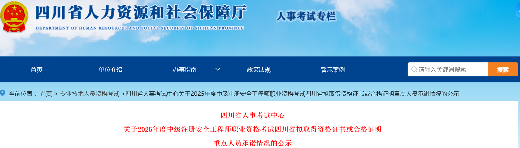 关于2025年度中级注册安全工程师职业资格考试四川省拟取得资格证书或合格证明重点人员承诺情况的公示