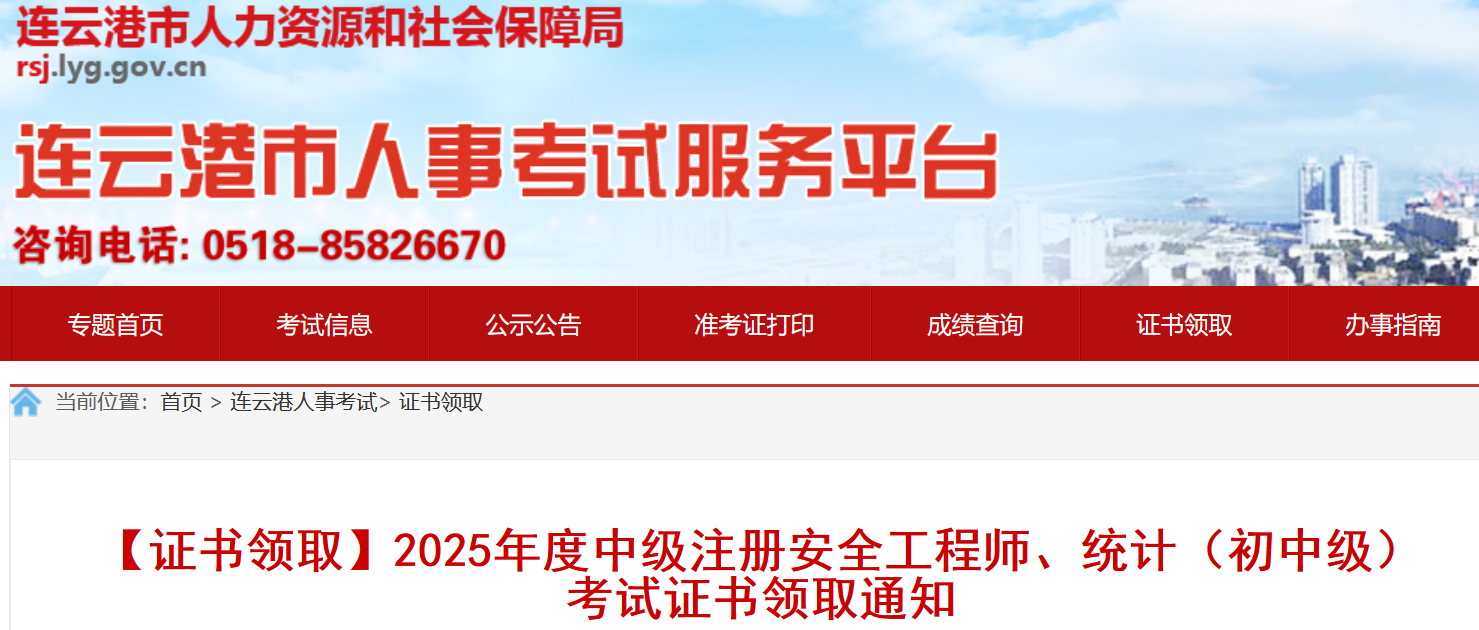 2025年度中级注册安全工程师、统计(初中级)考试证书已到,请考生及时领取。