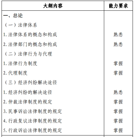 《经济法》科目考试大纲。
