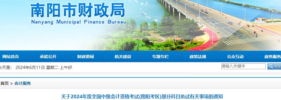 近日,南阳市财政局发布《关于2024年度全国中级会计资格考试(南阳考区)部分科目免试有关事项的通知》,通知明确了2024年南阳市中级会计师考试免试科目申请时间为6月19日至7月1日。