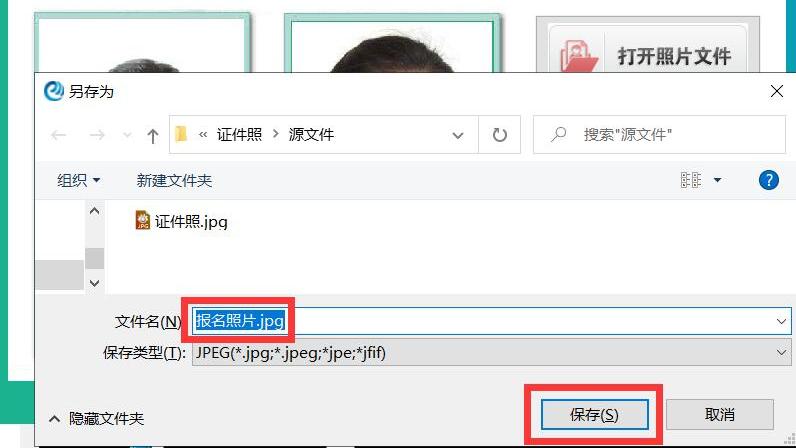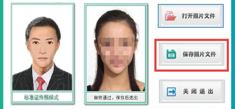 3、点击"保存照片文件"按钮保存审核合格后的照片文件(默认文件名为:报名照片.jpg):