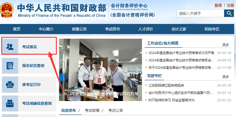 1、登录进入全国会计资格评价网(http://kzp.mof.gov.cn/)在页面中点击右上方“登录/注册”链接。