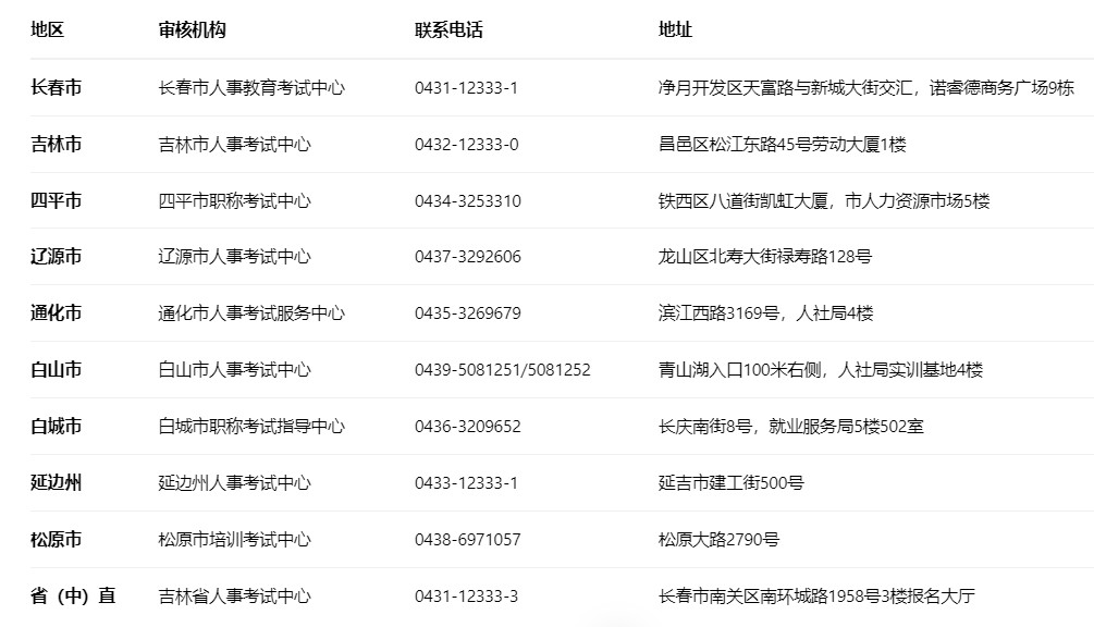 本次2026年吉林监理工程师考前资格审核在全省各市(州)均设点进行,考生应前往报名时所选考区对应的机构办理。具体地址和联系方式如下: