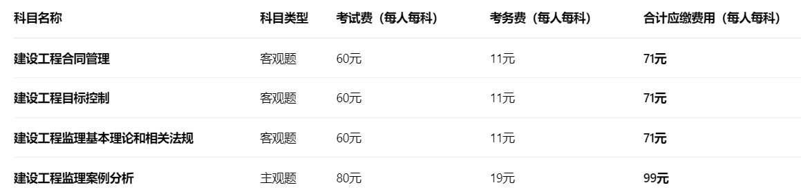 举例说明:若报考全部4个科目(考全科),则总计应缴费用为:71元 * 3 + 99元 = 312元。请考生根据自身报考科目数量计算总费用。