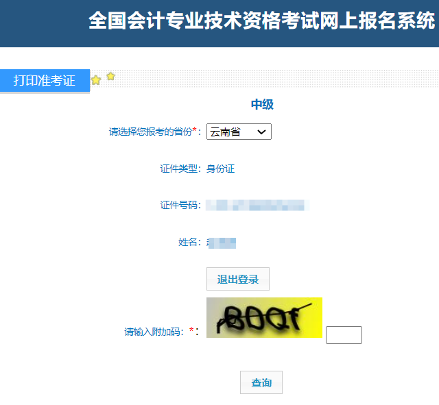 点击〔查询〕进入下一级页面。核对准考证信息是否有误。请认真核对中级会计准考证上的姓名、照片、准考证号、身份证号等信息,确认无误后,点击打印,即可成功打印。