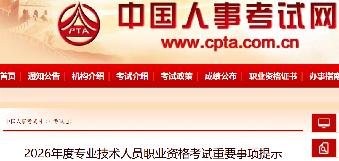 2026年度专业技术人员职业资格考试重要事项提示