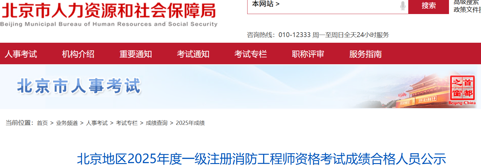 北京地区2025年度一级注册消防工程师资格考试成绩合格人员公示