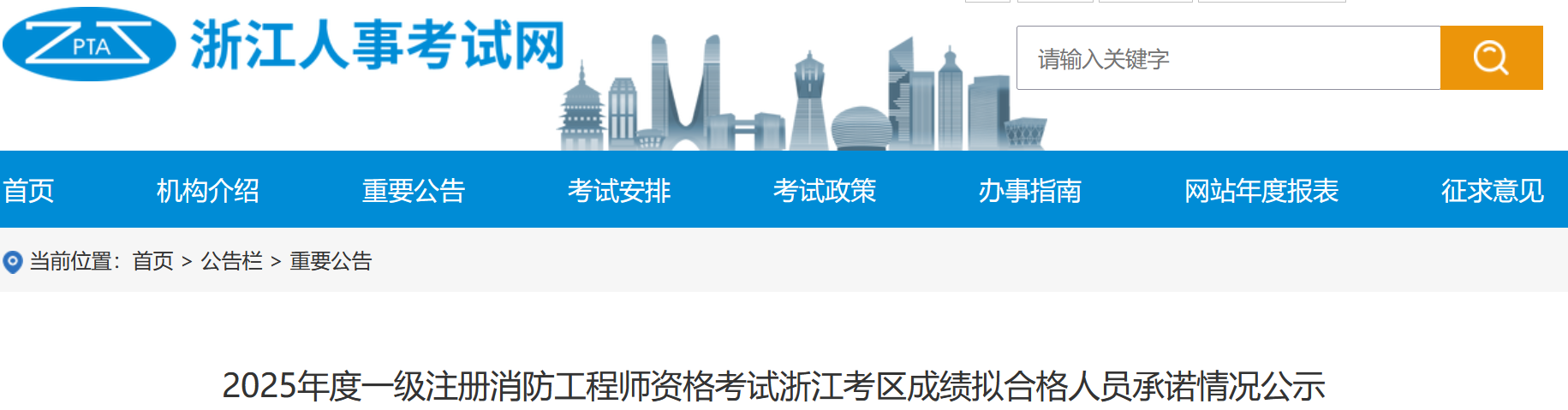 2025年度一级注册消防工程师资格考试浙江考区成绩拟合格人员承诺情况公示