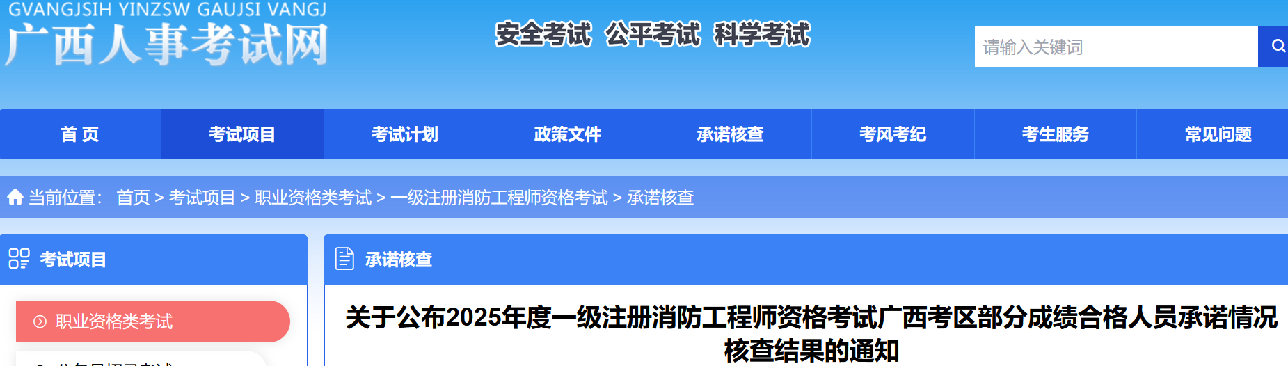关于公布2025年度一级注册消防工程师资格考试广西考区部分成绩合格人员承诺情况核查结果的通知