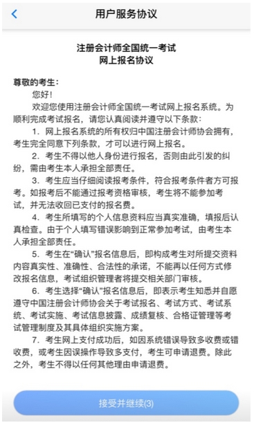 点击接受“2024年应届毕业生参加注册会计师全国统一考试报名承诺书”