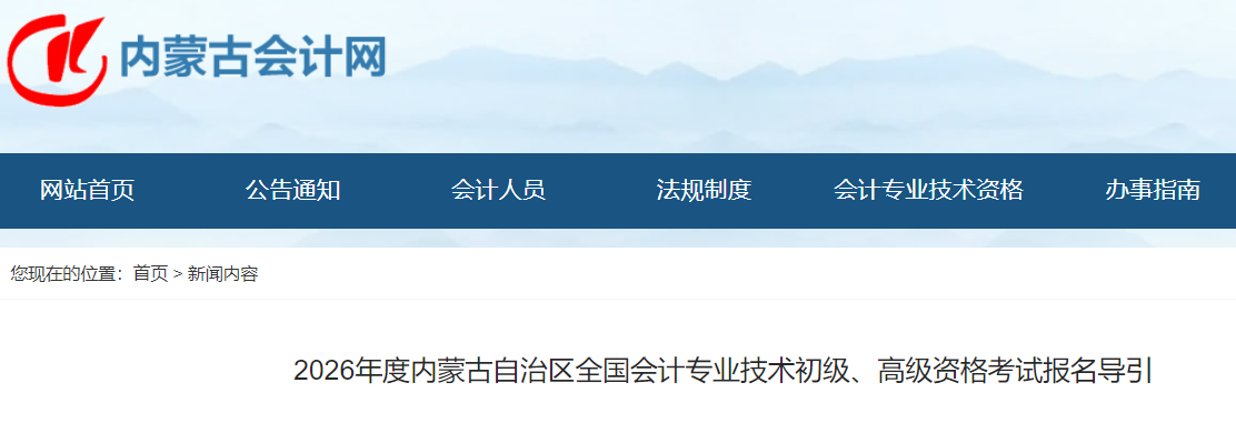 12月14日,内蒙古会计网发布了《2026年度内蒙古自治区全国会计专业技术初级、高级资格考试报名导引》,其中明确2026年初级会计报名时间、报名网址、报名流程、考试地区选择、诚信报考、报名条件、考务日程、重复缴费退费等内容。