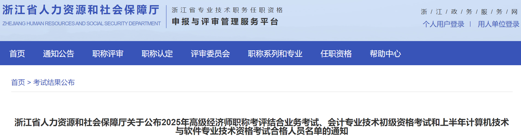 根据人力资源社会保障部办公厅《关于 33 项专业技术人员职业资格考试实行相对固定合格标准有关事项的通告》,现将我省2025 年高级经济师职称考评结合业务考试、会计专业技术初级资格考试和上半年计算机技术与软件专业技术资格考试合格标准及合格人员有关情况通知如下: