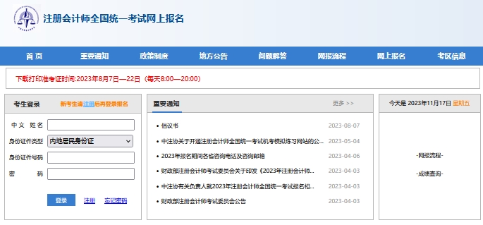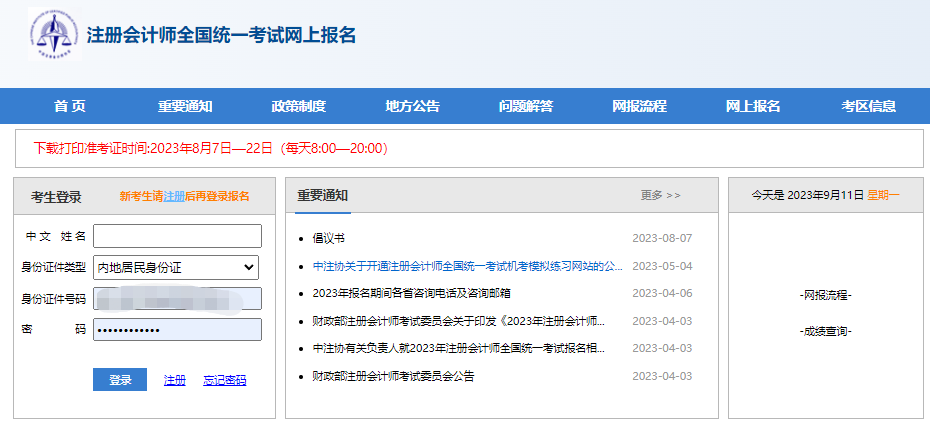 (1)登录“注册会计师全国统一考试网上报名”系统;