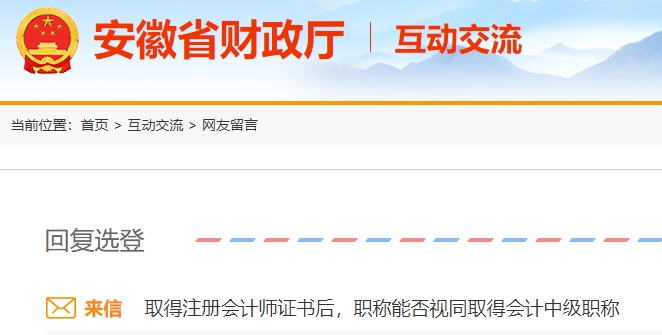 近日,有考生咨询取得注册会计师证书后,能否视同取得会计中级职称?对此安徽省财政厅作出了回复:注册会计证书不能等同于中级职称证书。