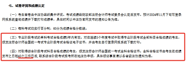 2024年注册会计师成绩公布时间预计在11月下旬,45个工作日后领取全科合格证书,因此预测2024年注册会计师证书领取时间在2025年1月。
